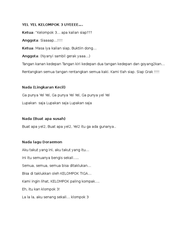 Contoh Yel Yel Kelompok 1 | Blog Pendidikan