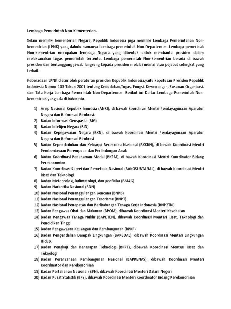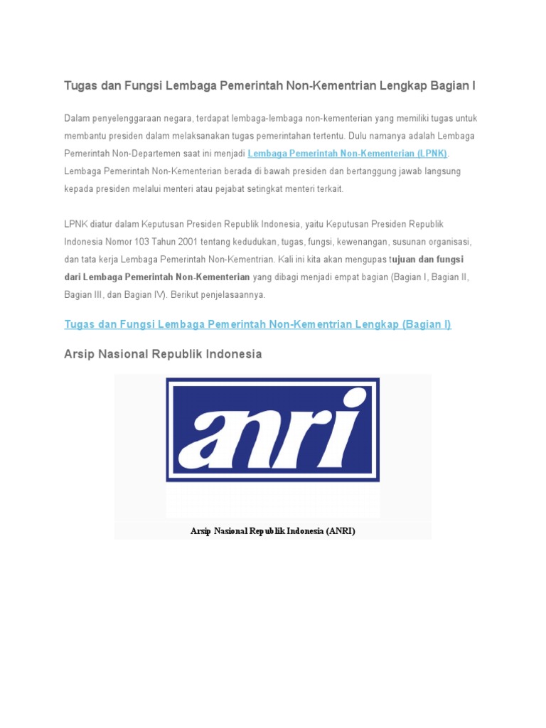 DOC) Tugas dan Fungsi Lembaga Pemerintah Non-Kementrian Lengkap Bagian I | ratna puspitasari - Academia.edu