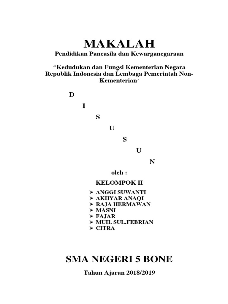 Kedudukan dan Fungsi Kementerian Negara Republik Indonesia dan Lembaga Pemerintah Non-Kementerian ⋆ DOC | PDF ⋆ Download Contoh Makalah Lengkap