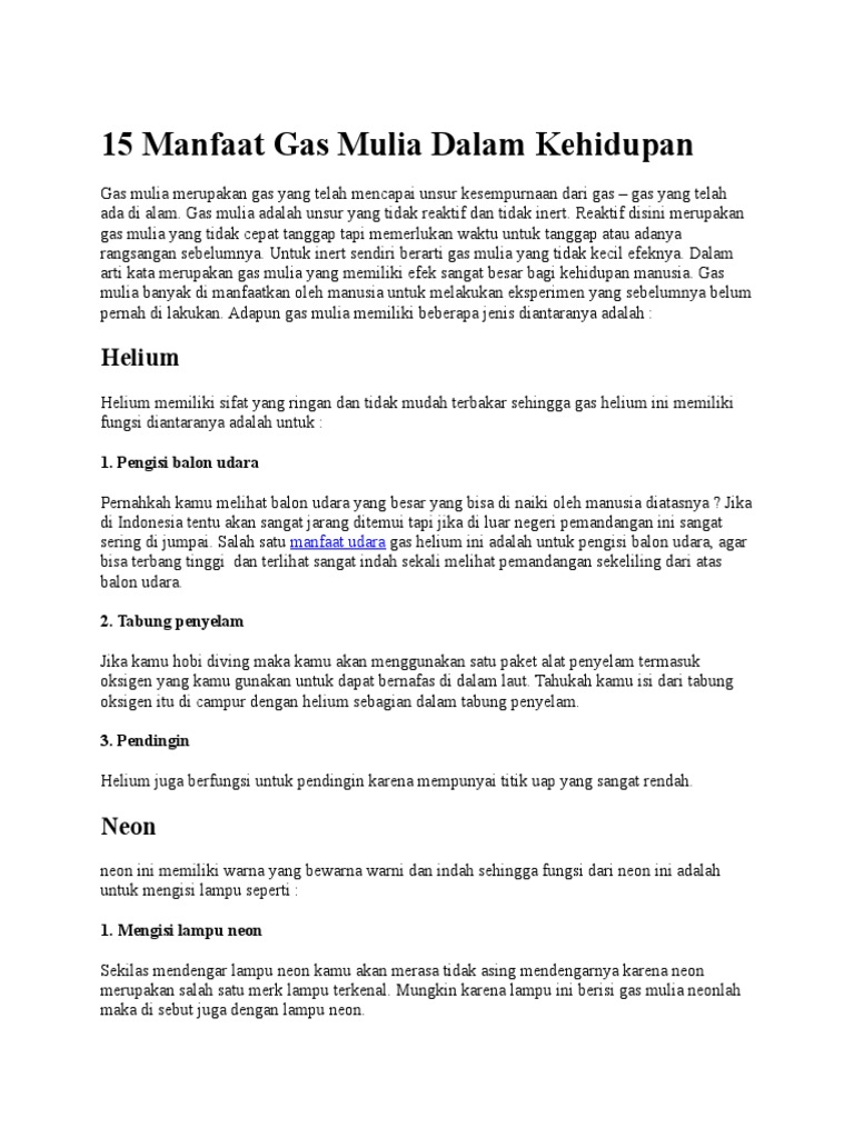 Contoh Gas Mulia Dalam Kehidupan Sehari Hari - Bagikan Contoh