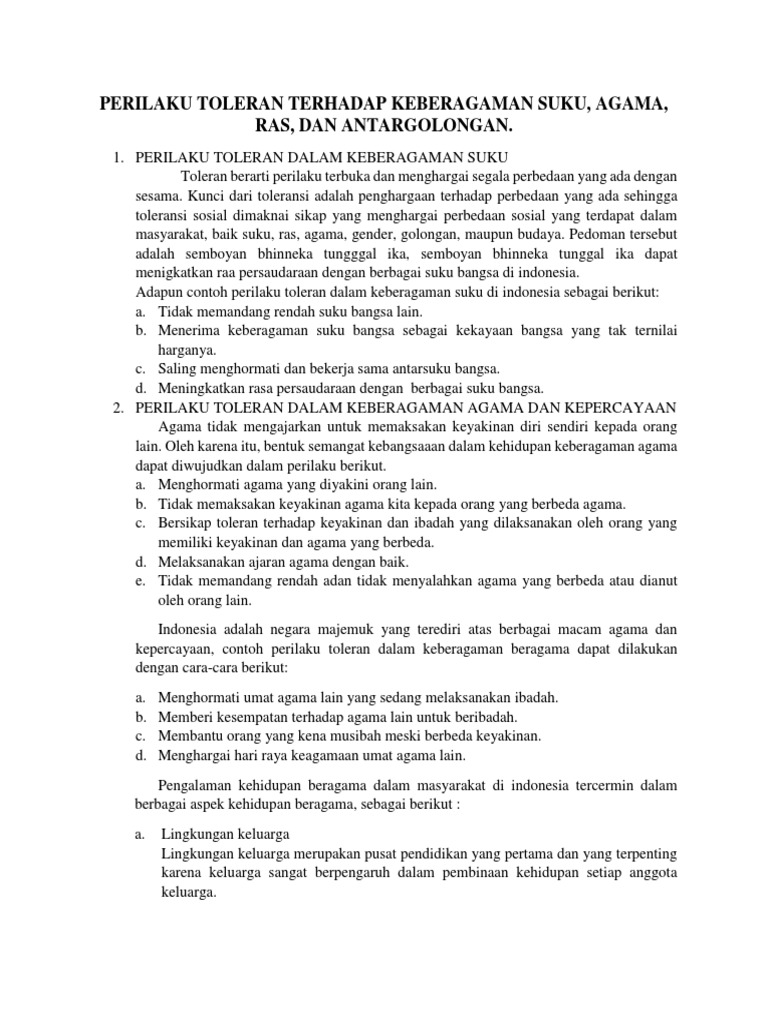 Sebutkan Contoh Perilaku Toleransi Di Lingkungan Masyarakat - Sebutkan Itu