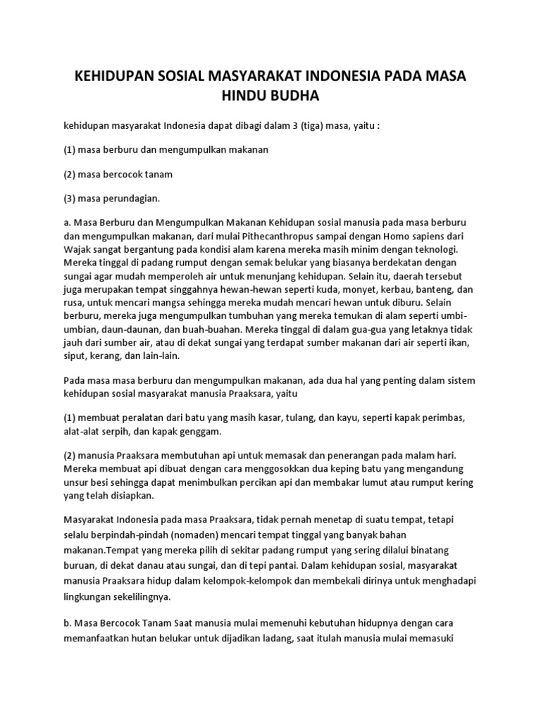 Kehidupan Sosial Masyarakat Indonesia pada Masa Praaksara, Hindu …
