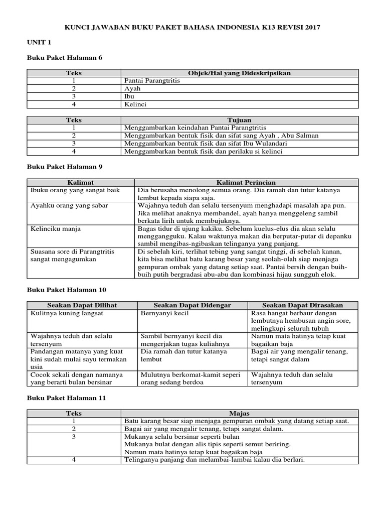 Kunci Jawaban Bin 7 k13 Unit 1