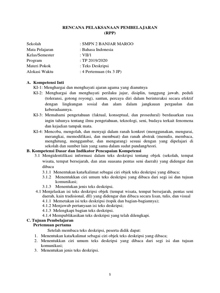 DOC) RPP teks deskripsi KD 3.1,3.2,4.1,4.2 - Copy | Tiur Anggreini …