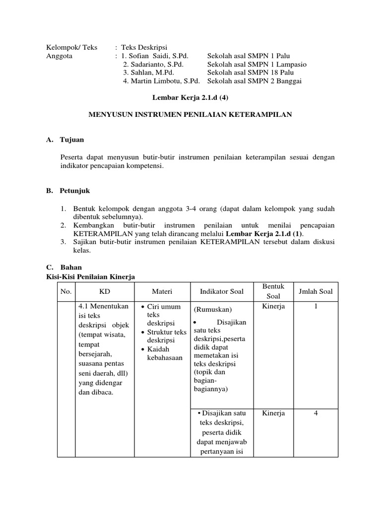 Lembar Kerja Peserta Didik: Bacaah dengan seksama teks desripsi …