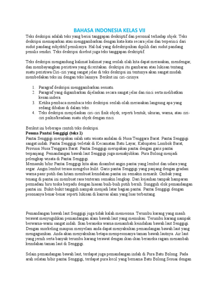 Bahasa Indonesia Kelas Vii: Pesona Pantai Senggigi (teks 1)