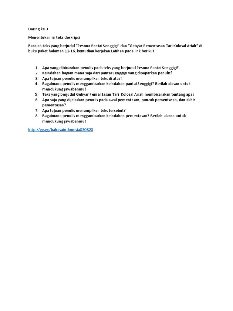 Menentukan struktur dan isi teks deskripsi – BELAJAR BAHASA INDONESIA