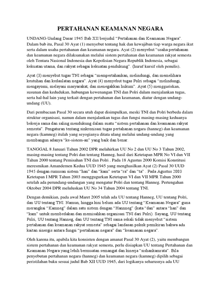 Pertahanan Dan Keamanan Negara Menurut UUD 1945 | Tugas Sekolah