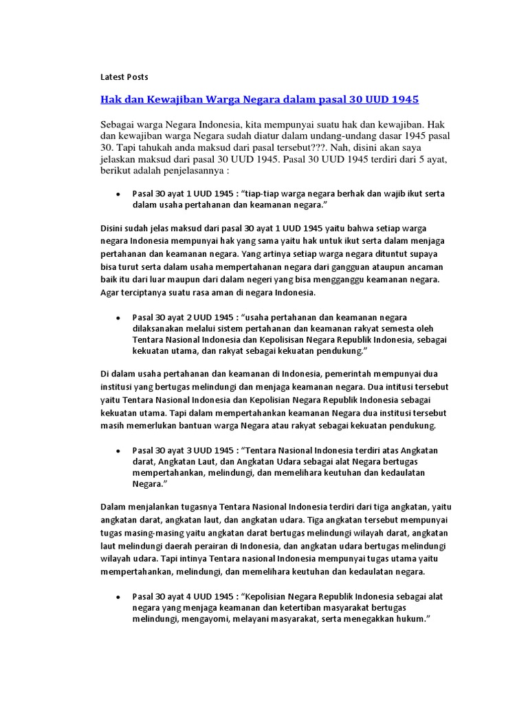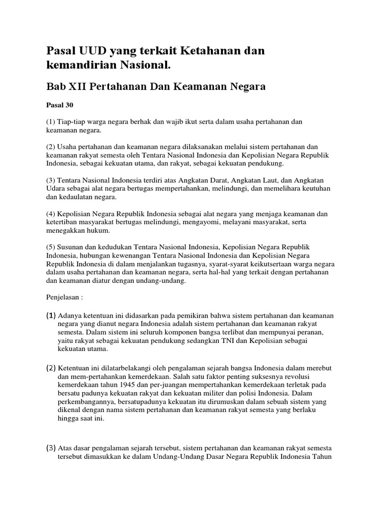 sebutkan bunyi pasal 30 ayat 1 dan ayat 2 UUD 1945!** - Brainly.co.id