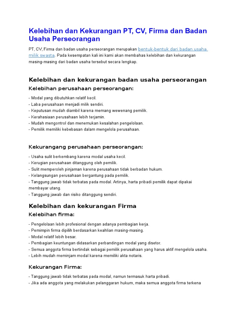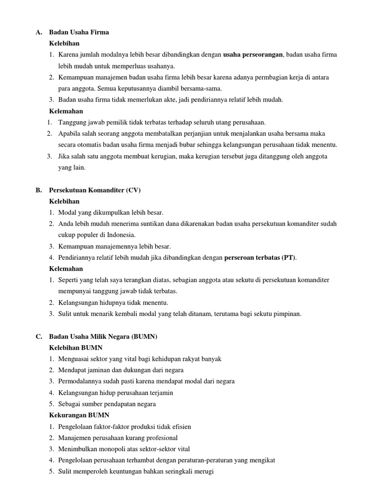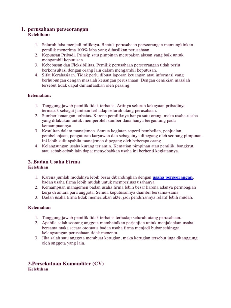 DOC) Kelebihan dan Kelemahan Bentuk Badan Usaha | Diah naimatus - Academia.edu