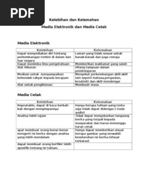 DOC) KELEBIHAN DAN KEKURANGAN MEDIA ELEKTRONIK | waode mardiyanti …