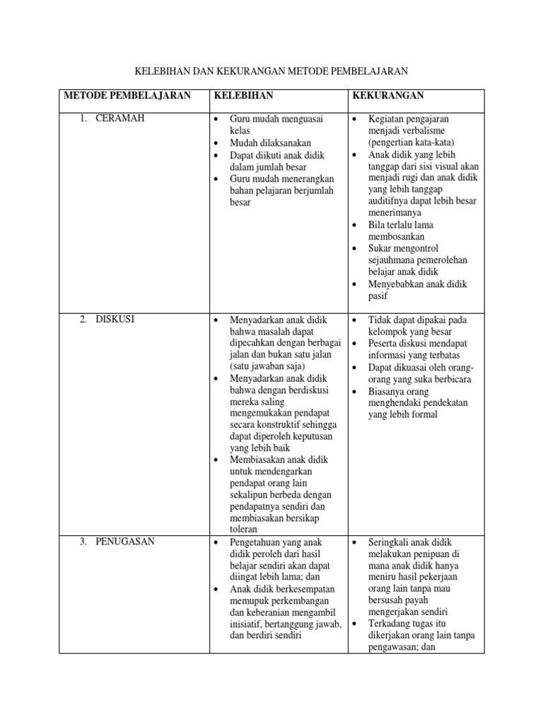 Kelebihan Dan Kekurangan Metode Pembelajaran