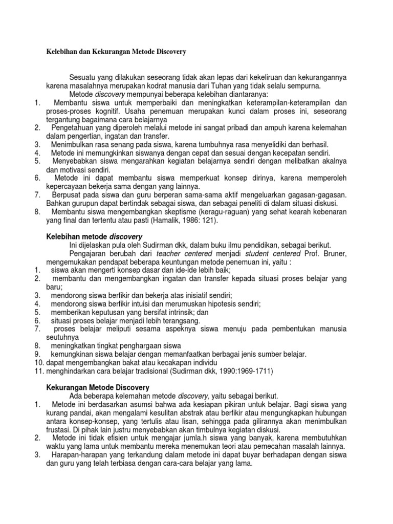 Kelebihan Dan Kekurangan Metode Discovery