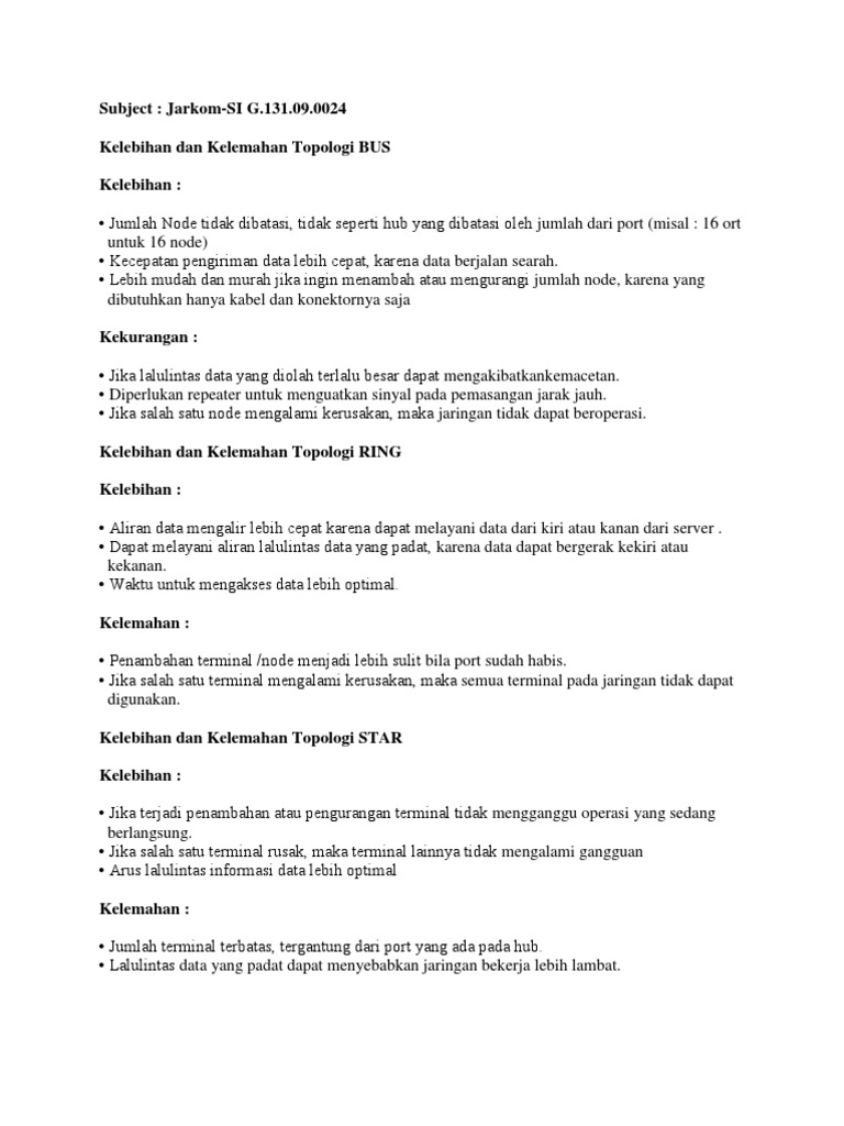 Kelebihan Dan Kekurangan Topologi Jaringan