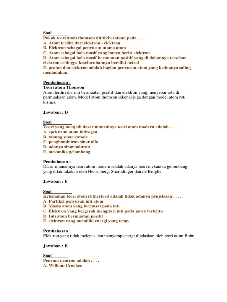 Lengkap - Contoh Soal Kimia Tentang Perkembangan Model Atom kelas …