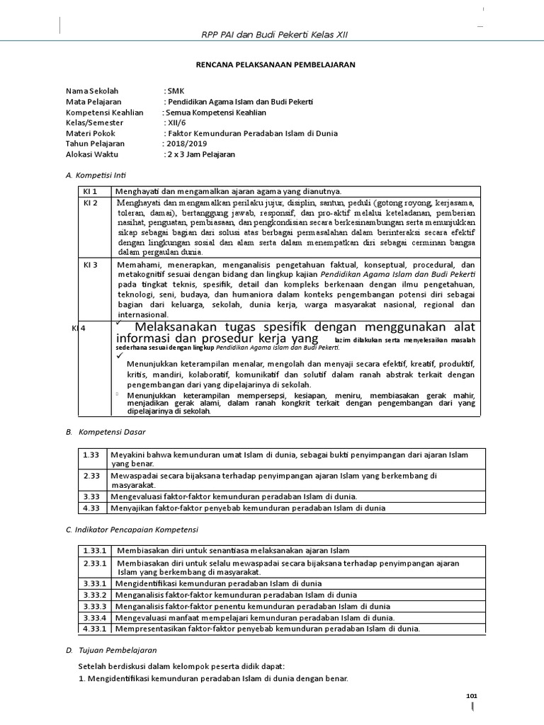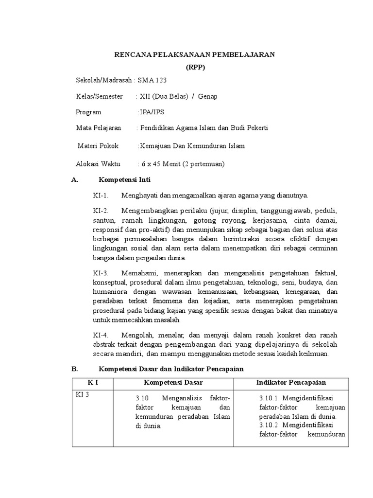 RPP Kemajuan Dan Kemunduran Peradaban Dalam Islam