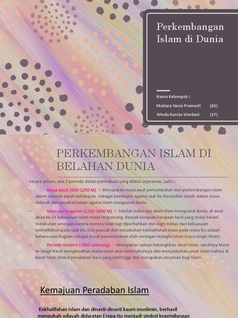 Perkembangan Islam di Dunia: Nama Kelompok: Mutiara Yavza Pramesti (26) Winda Kurnia Wardani (37)