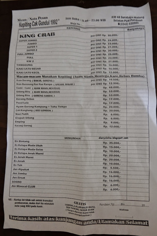 menunya - Picture of Restaurant Kepiting Cak Gundul, Surabaya - Tripadvisor