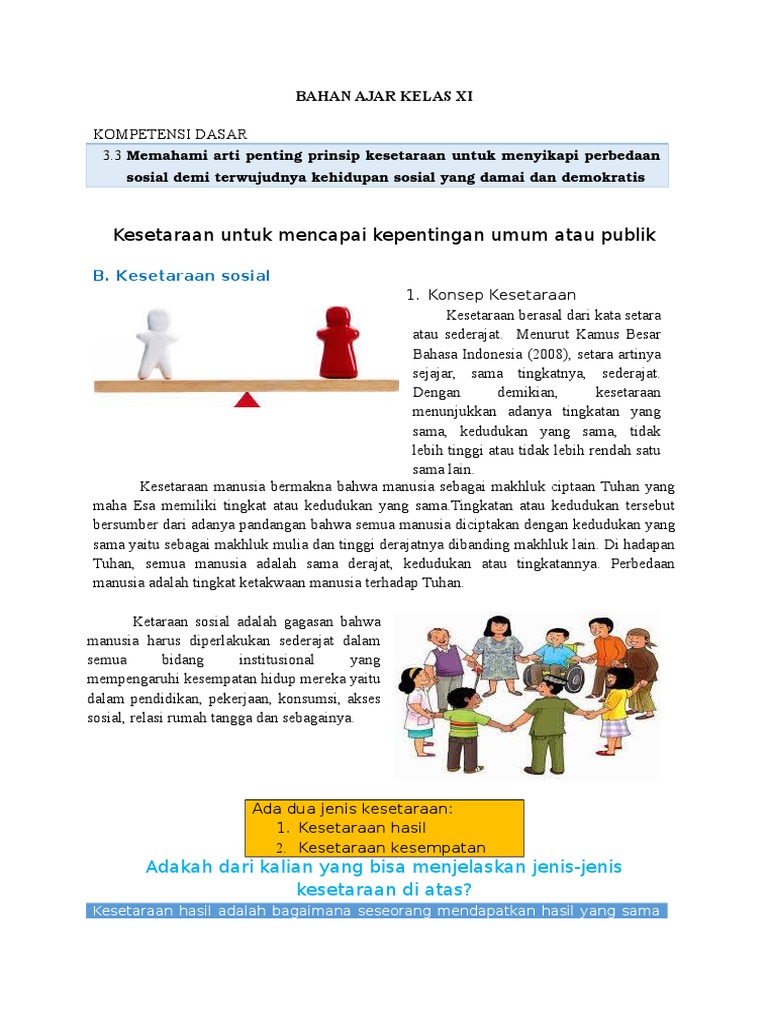 Kesetaraan dalam Perbedaan Sosial di Masyarakat (Part 1) Kelas XI …