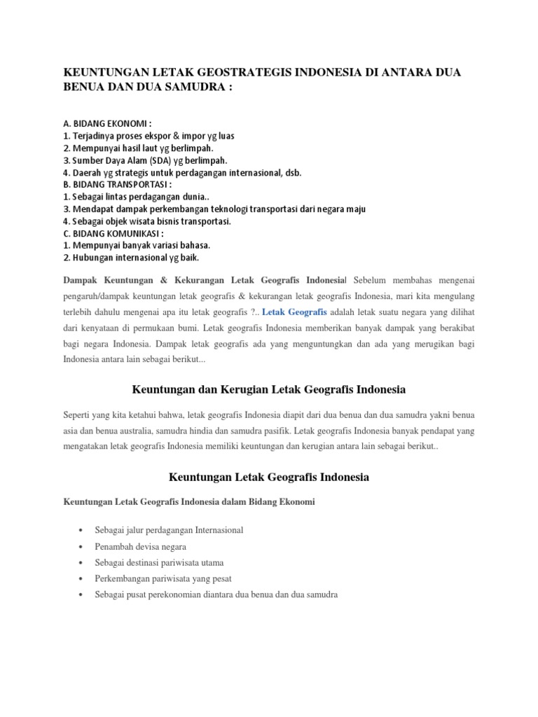 Dampak Laba Dan Kerugian Letak Geografis Indonesia - Aline Bordados