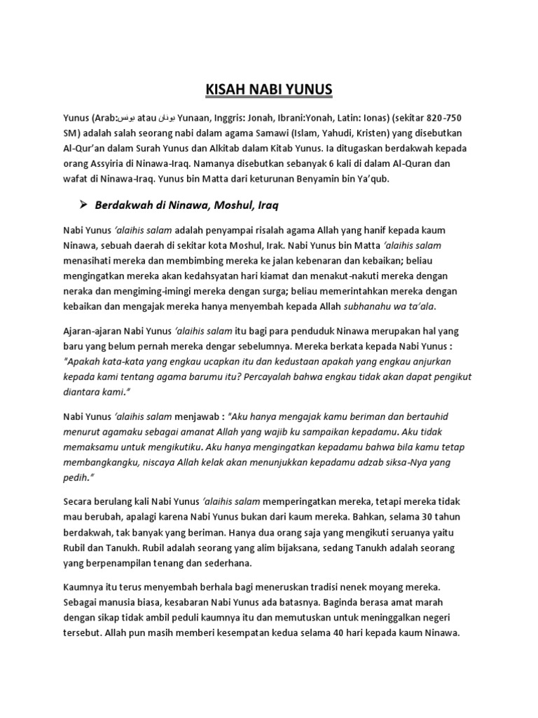 Kisah Nabi Yunus Secara Singkat Brainly - Berita Jakarta