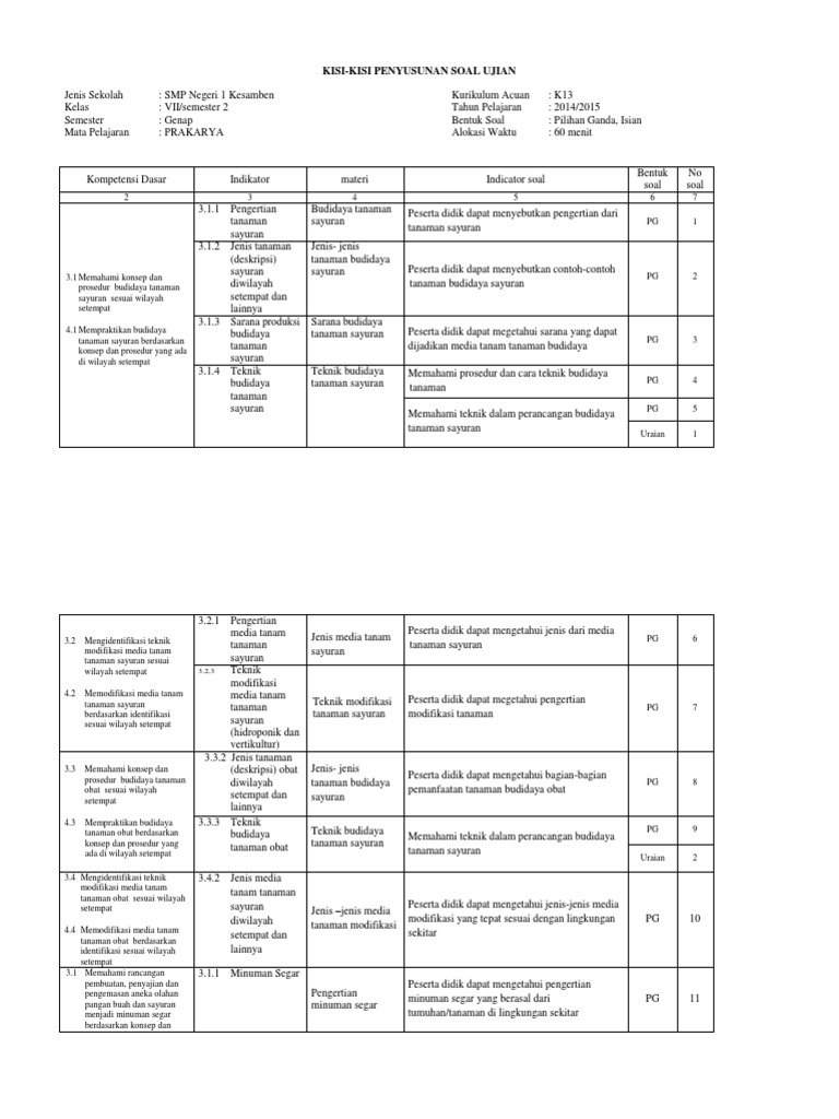 Kisi Kisi Prakarya Kelas 7 Kurikulum 2013 - Guru Galeri
