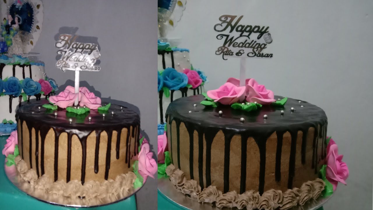 Cara mudah menghias kue bolu pengantin coklat moca - YouTube