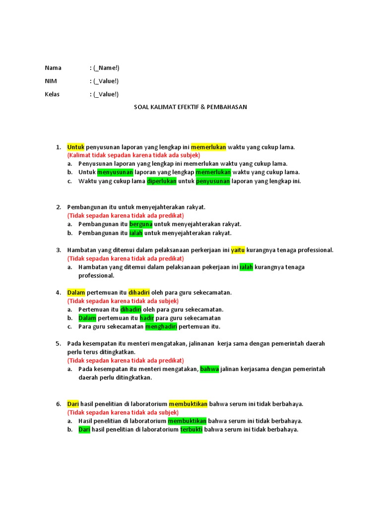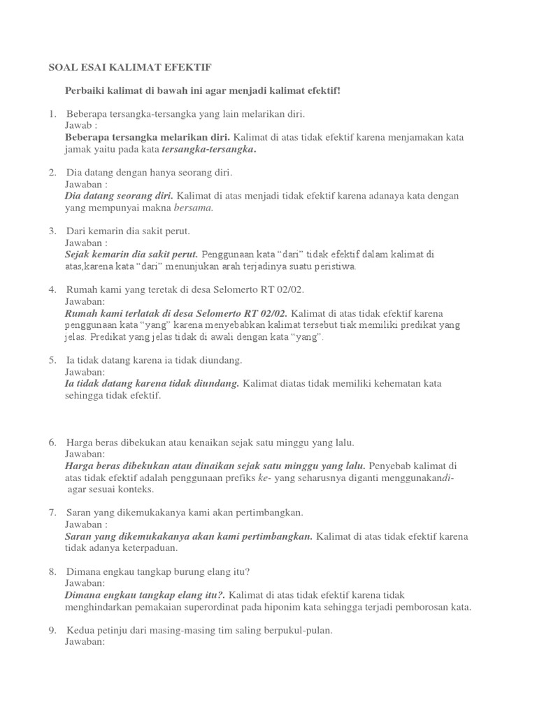 Contoh Soal Kalimat Efektif | Pembahasan Soal Kalimat Efektif …