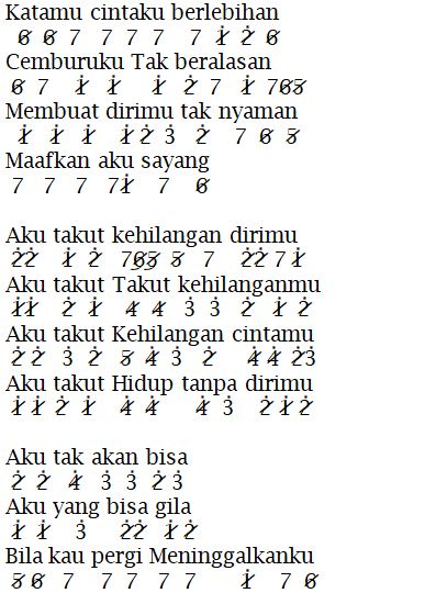 Not Angka Lagu Aku Takut-Republik - Kumpulan Not Angka Pianika Lagu Terupdate