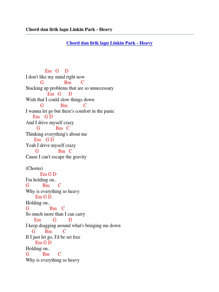 Chord Dan Lirik Lagu Linkin Park - Heavy | Leisure