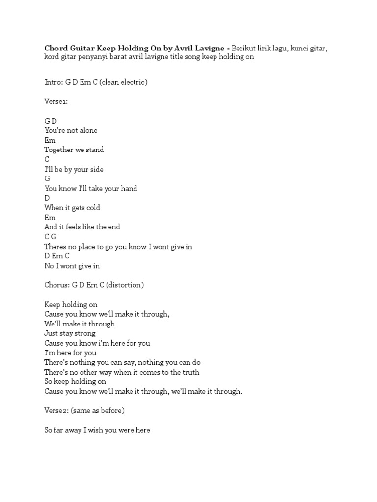 BOMBA a.k.a BOIM: Chord Gitar - Avril Lavigne Wish You Were Here