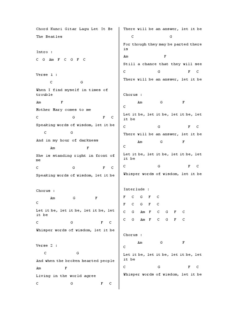 Chord Kunci Gitar Lagu Let It Be | Song Structure | Songs