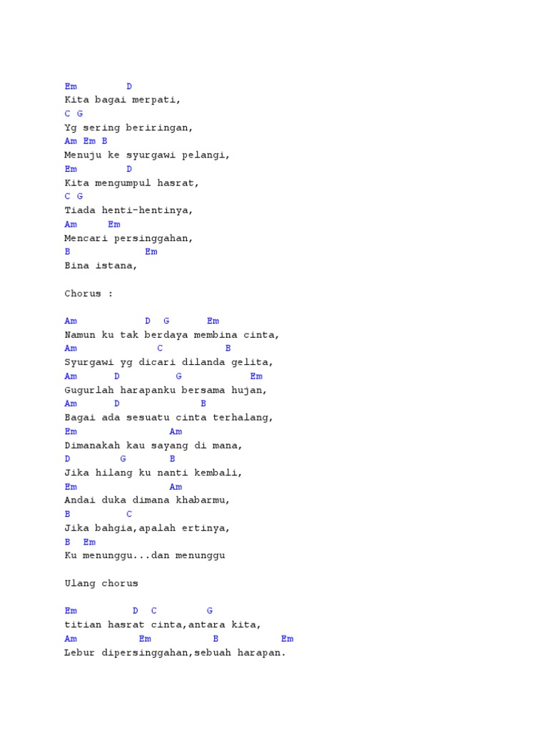 Chord Dasar Merpati Cinta Kandas Tiada Terbalas | Kunci Gitar …
