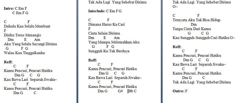 Tag: Lirik Lagu Pencuri Hati - Lirik Lagu dan Kunci (Chord) Gitar ‘Pencuri Hati’ - Armada, ‘Kau Bawa Lari, Separuh Jiwaku’ - Tribun Wow