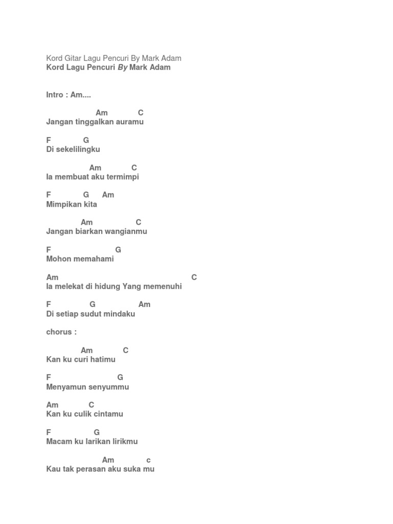 Chord Kunci Gitar Pencuri Hati (Chordtela & Chordfrenzy) - Armada - AfyInfo