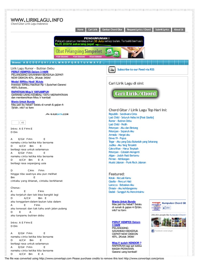 WWW Liriklagu Info: Lirik Lagu Rumor – Butiran Debu