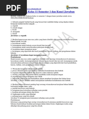 Soal Prakarya Kelas 11 Semester 1 Dan Kunci Jawaban