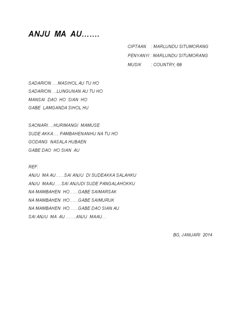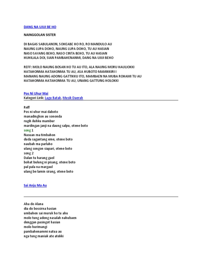 Teks Lagu Sai Anju Ma Au - Berbagai Teks Penting
