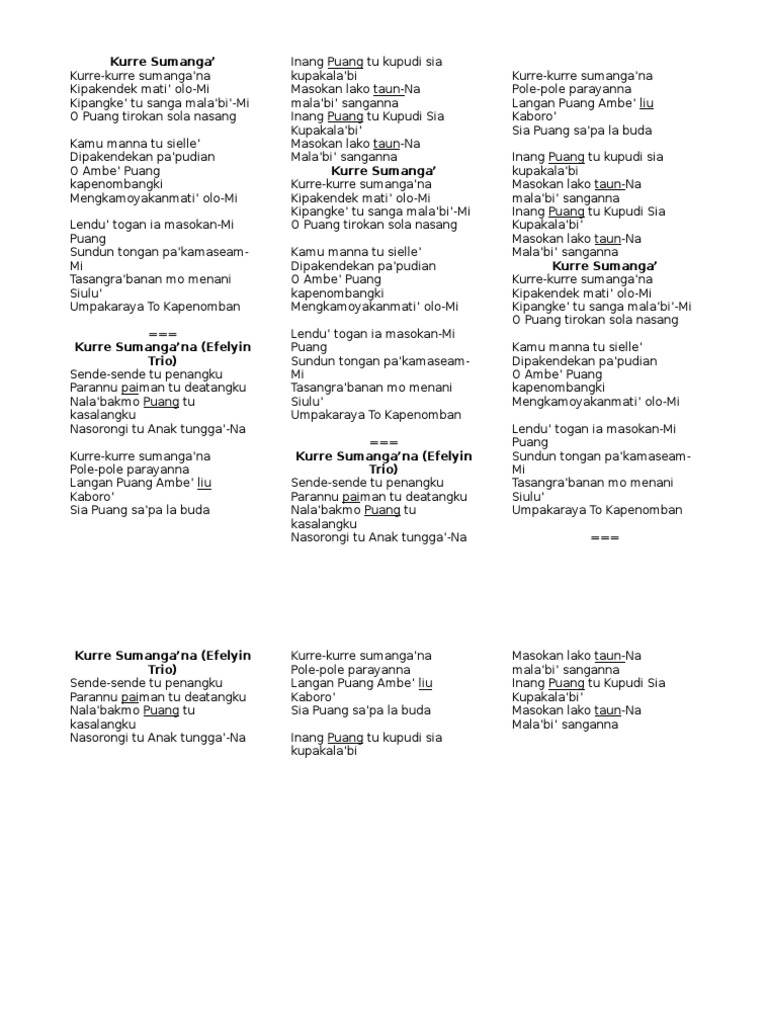 KURRE SUMANGA’ PUANG - Lyrics and Music by TRIO GIDEON arranged by …