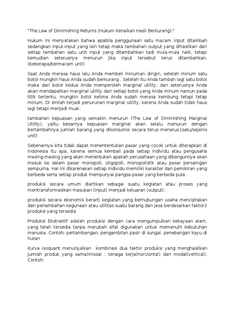 Contoh Soal Hukum The Law Of Diminishing Returns - Bagikan Contoh