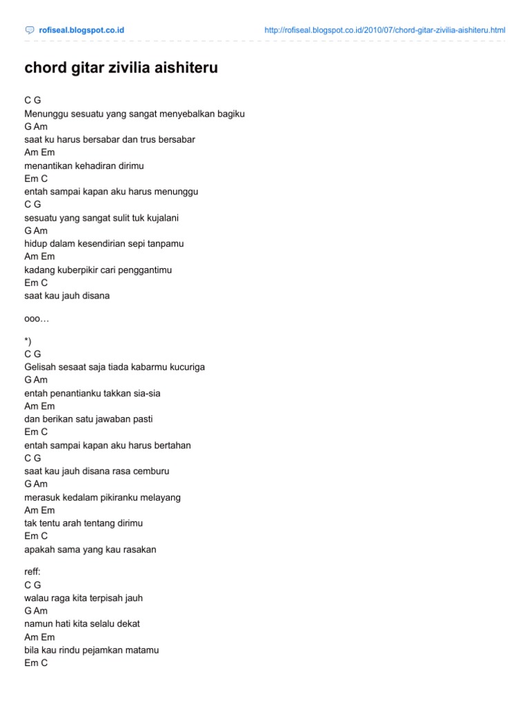 Chord Gitar Lirik Lagu Zivilia Aishiteru - Abadikini.com
