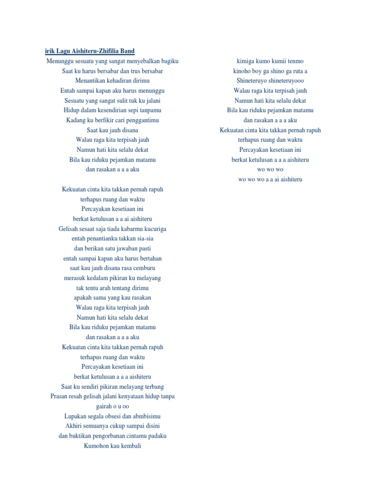 zifilia band lirik lagu aishiteru - Posts | Facebook