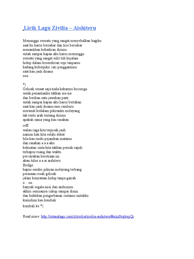 LIRIK LAGU INDONESIA - Aishiteru (Zivilia) - Wattpad