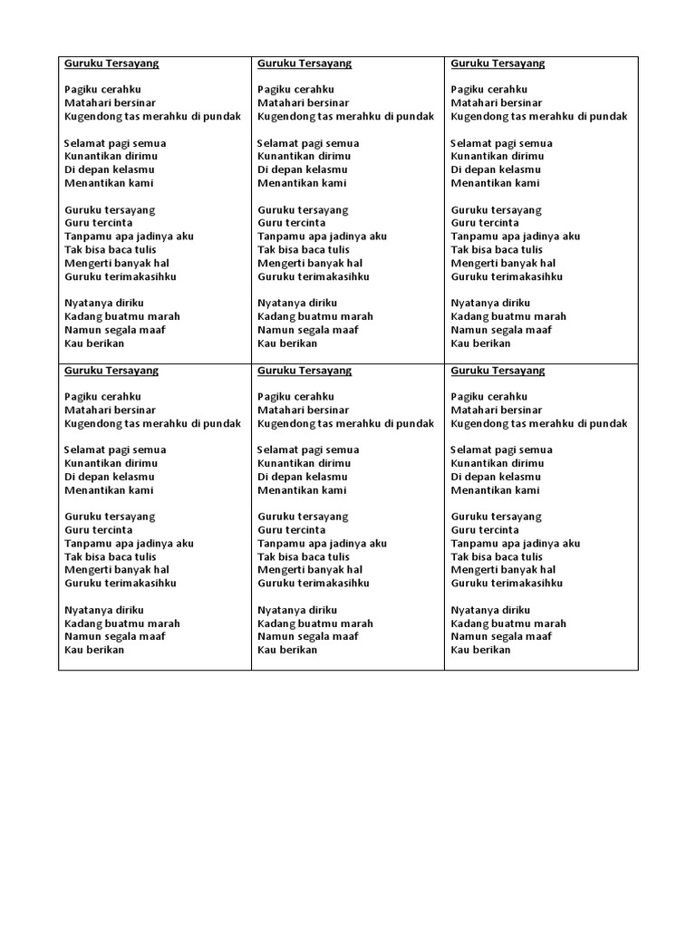 Lirik Lagu Guruku Tersayang & Ibu Guru Kami - [PDF Document]