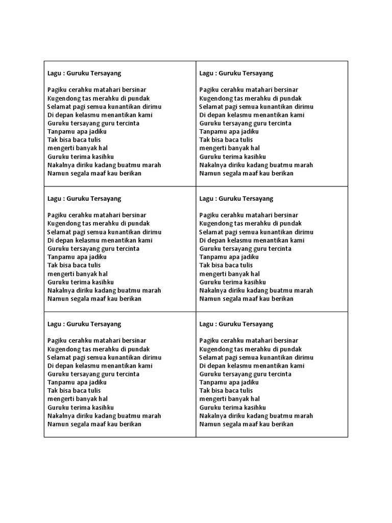 Ruang Belajar siswa kelas 4: Lirik Lagu Guruku Tersayang