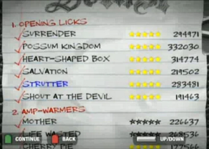 Baka Sensei: Daftar Judul Lagu Guitar Hero II (PS2)