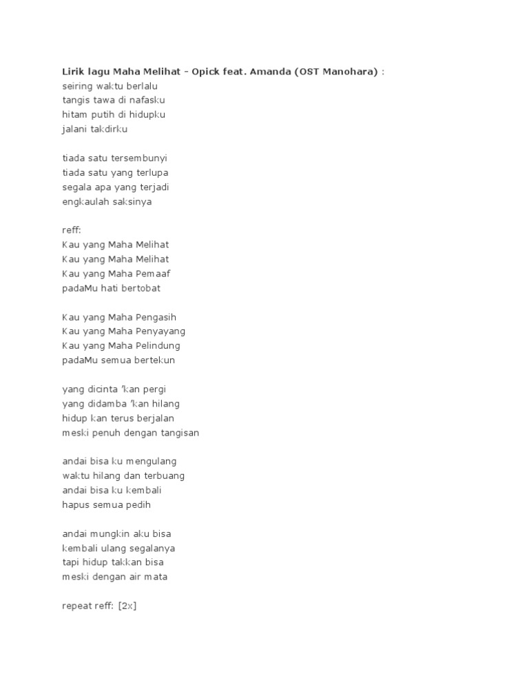 Opick Feat. Amanda - Maha melihat Lirik | Maha Melihat - Opick …