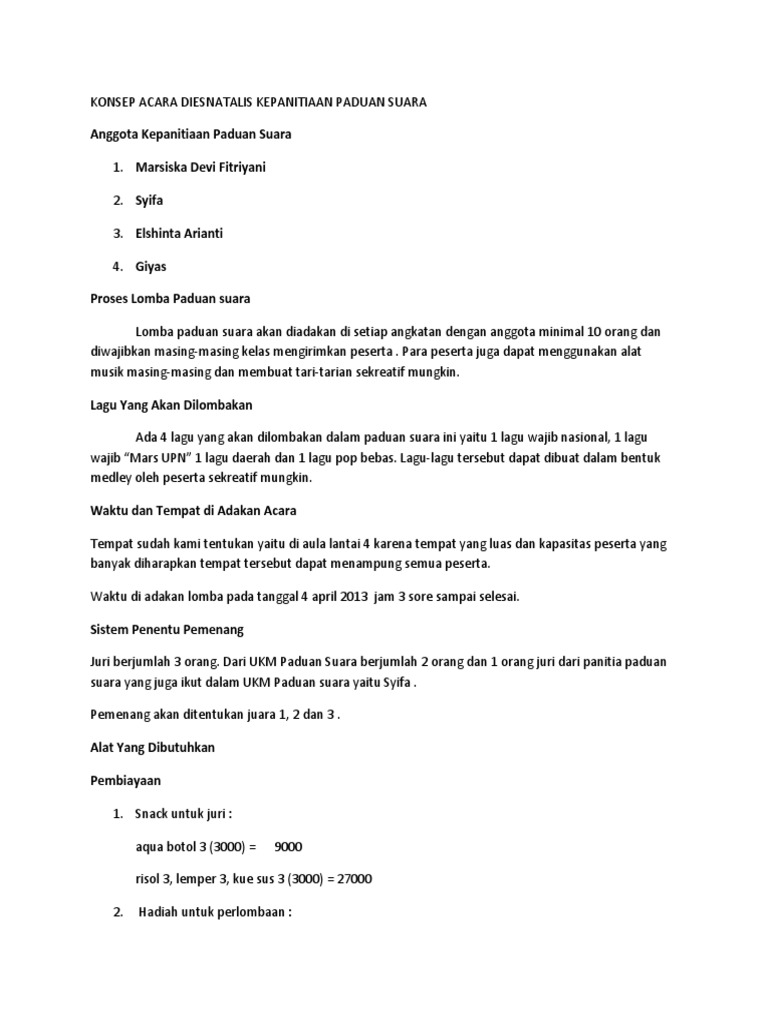 Konsep Acara Diesnatalis Kepanitiaan Paduan Suara