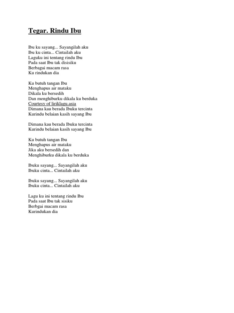 Lirik Lagu Tegar Rindu Ibu - YouTube