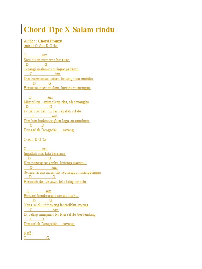 SALAM RINDU” LYRICS by TIPE-X: G Am D G…